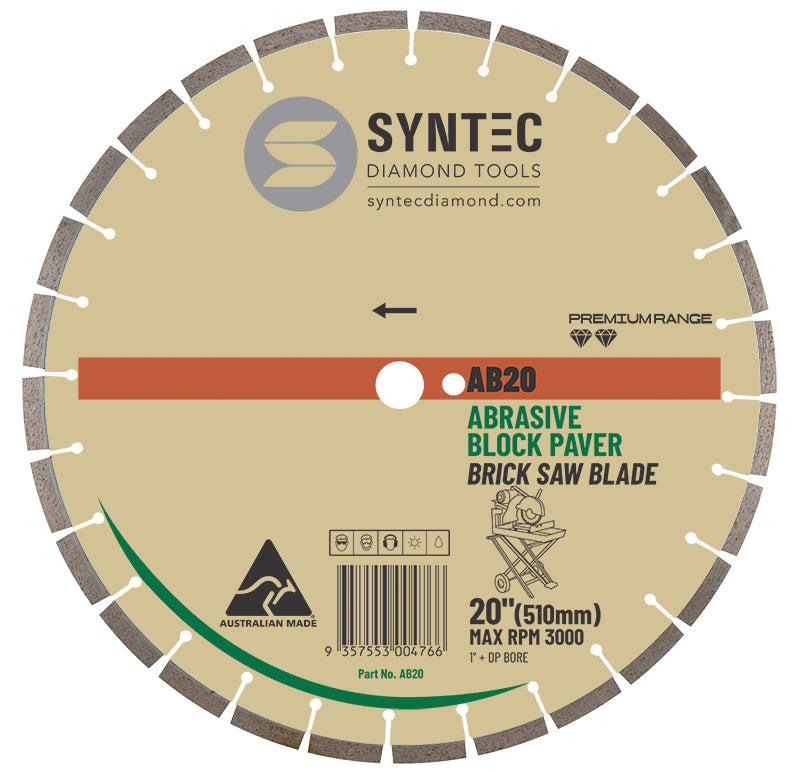Abrasive Block Paver 20" (510mm) Brick Saw Blade 1" + DP Bore 40x3x12mm Segment Size